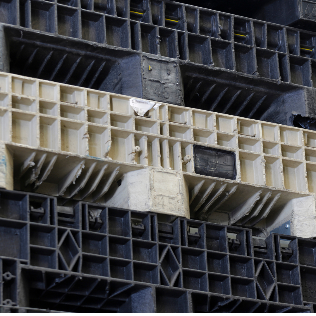 Reduciendo el uso de materias primas (solo repuestos), Reciclado de plásticos y Reutiliza la tarima.
